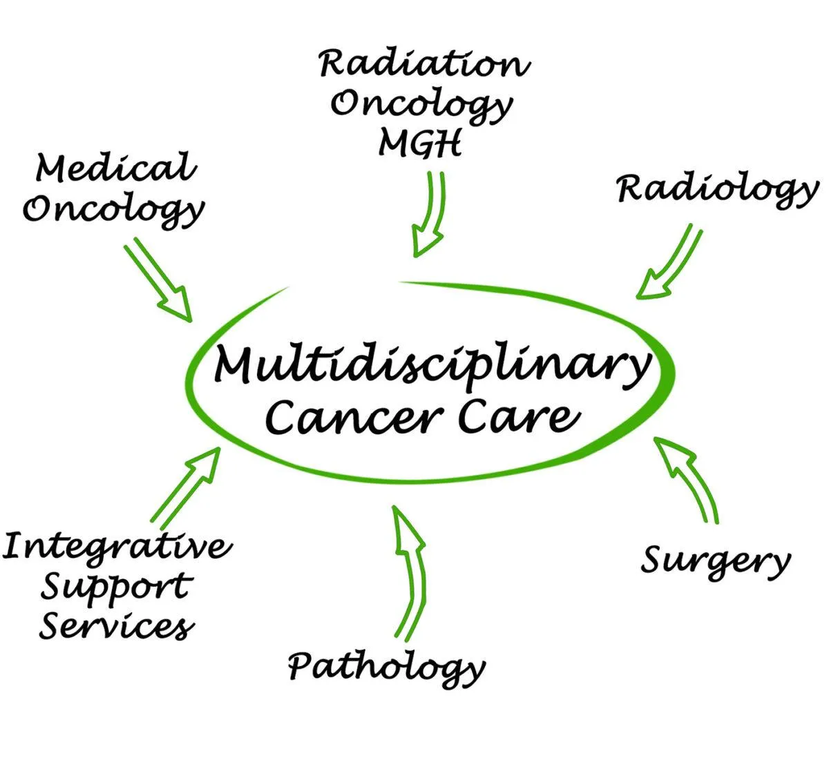 The focused goal for medical oncologists, surgeons and radiation oncologists is on targeting tumour eradication.